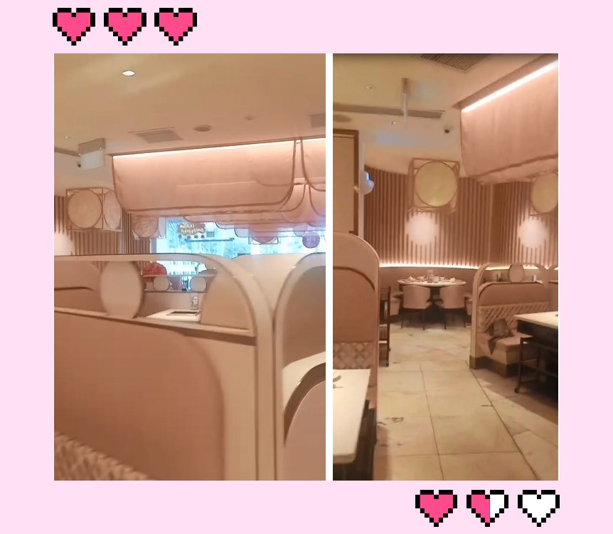 这个粉色的餐厅就是乐天餐饮旗下的哦,我们的客户在这里上班。